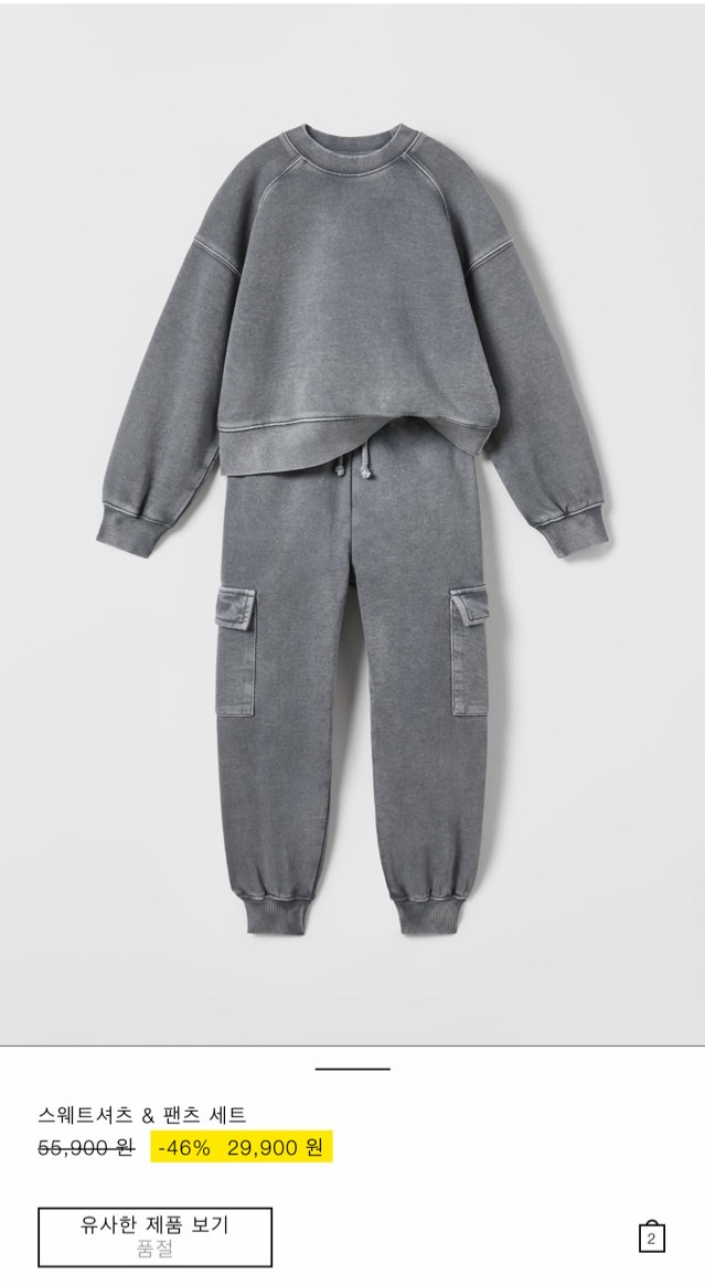 이건 키즈 제품이에요. 자라는 베이비 라인 따로 키즈 제품 따로 있답니다. 키즈는 6살(112cm)부터 나와요. 작년에 딸아이가 5살일 때 자라 6살 사이즈를 사보니 너무 크더라고요. 그래서 이번엔 6살로 주문했답니다. 세트가 이 가격이면 너무 괜찮죠?? 면도 좋아 보이고 색도 너무 이뻐 보여요. 다만 회색이라 딸이 입을런가 모르겠어요. 이것도 어제 바로 품절됐답니다.