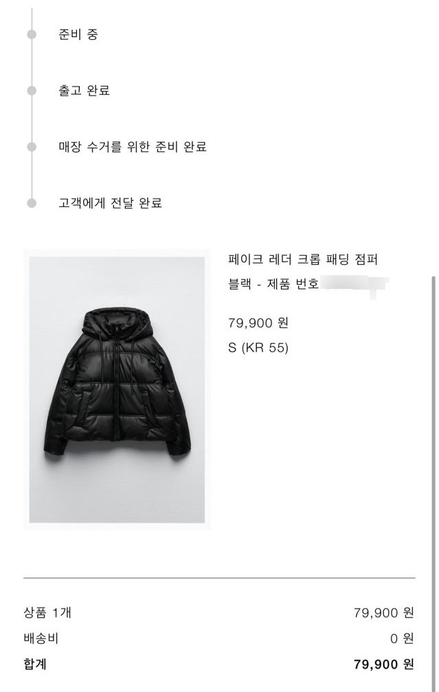 처음에 M 했는데 일단 급하게 겨우 S 건졌어요. 이것도 오픈과 동시에 빛의 속도로 품절됐었죠. 현재 베이지색만 남아있답니다. 일단 물건을 받아 보지 않아 잘 모르겠어요. 이런 숏 패딩 가지고 싶었는데 심지어 레더에요. 너무 따뜻하겠죠? 전에 자라의 레더 제품을 구매했는데 너무 따뜻했어요. 그래서 이번에도 픽 했답니다.