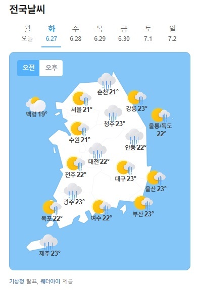 | 7월 둘째 주 날씨 예보 -이번 주 내내 비 온대요! (0) | 2023.07.11 |