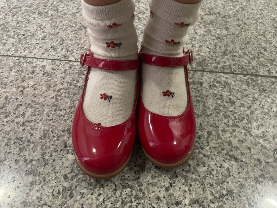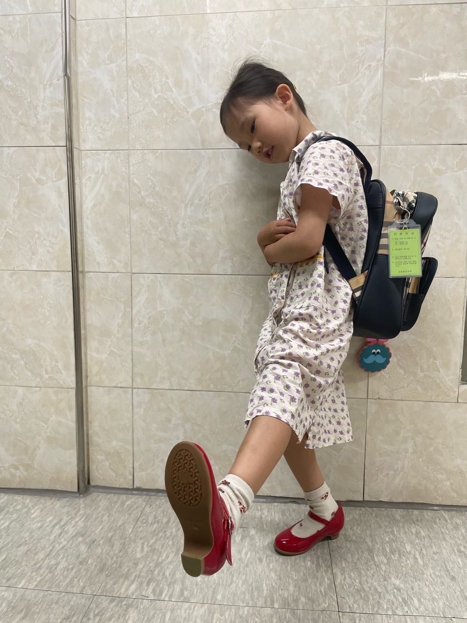 심플한 디자인으로 아이들보다는 엄마들이 좋아할 법한 구두네요. 아이들은 그저 반짝반짝 구두 참 좋아하잖아요. 그런데 이 구두는 굽이 있고 색상이 레드라 그런지 딸이 무척 좋아했어요. 굽은 2.5cm로 아이들이 신기에 딱 알맞은 높이입니다.