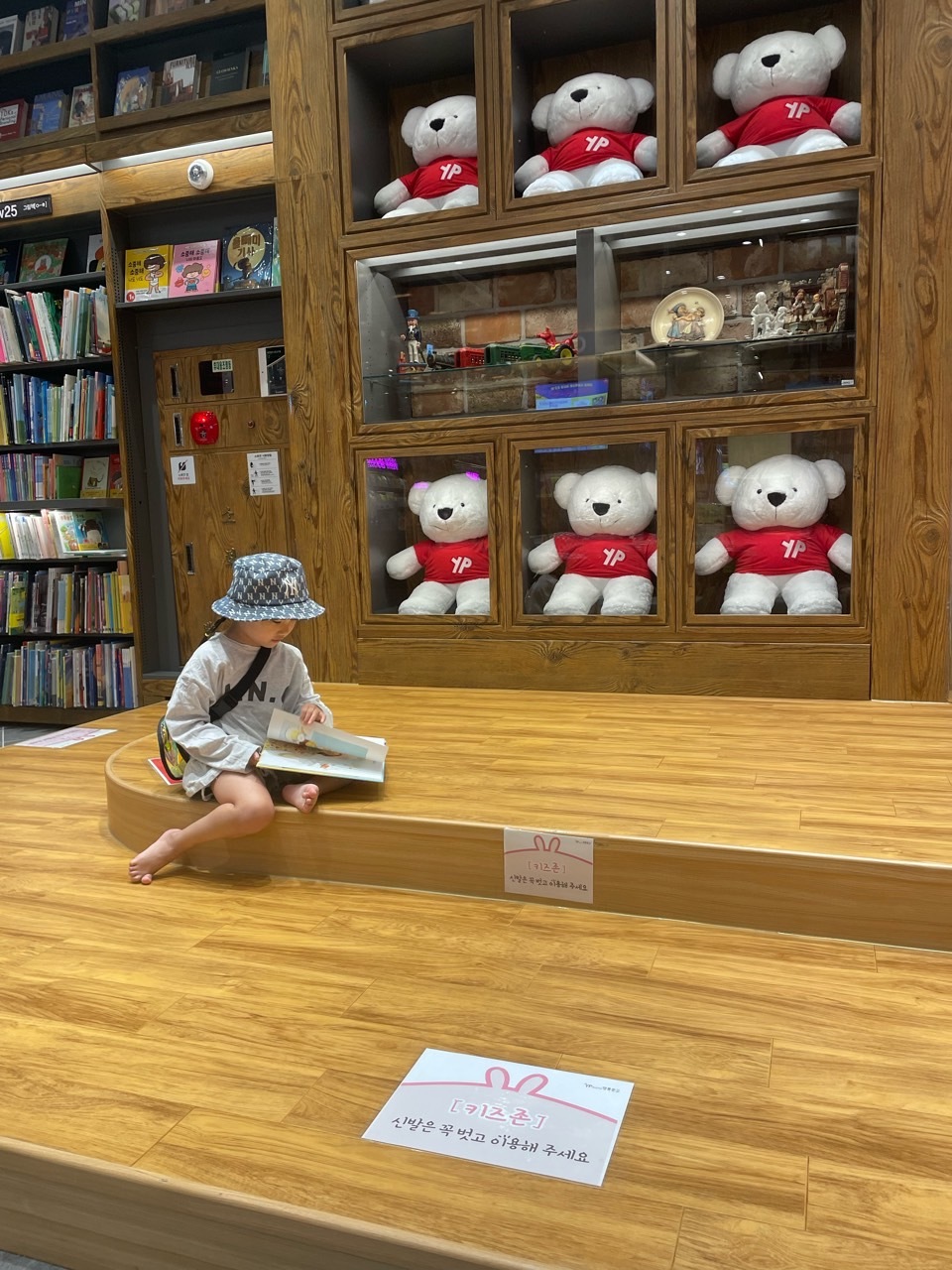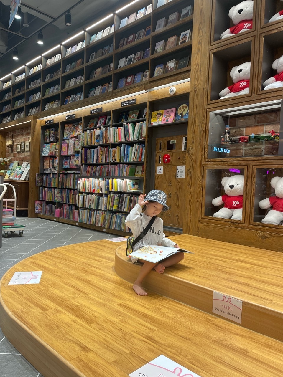 요즘 하율이와 책 보러 많이 다니는 것 다 아시죠? 여긴 하율이와 제가 자주 놀러 오는 곳이에요. 요즘은 이렇게 큰 서점을 찾아보기가 힘들어서 아쉬워요. 저희 집 근처에 이런 큰 서점이 있다는 건 너무 좋은 것 같아요.