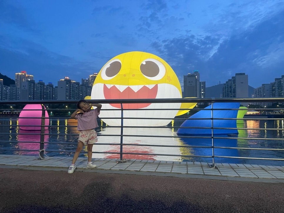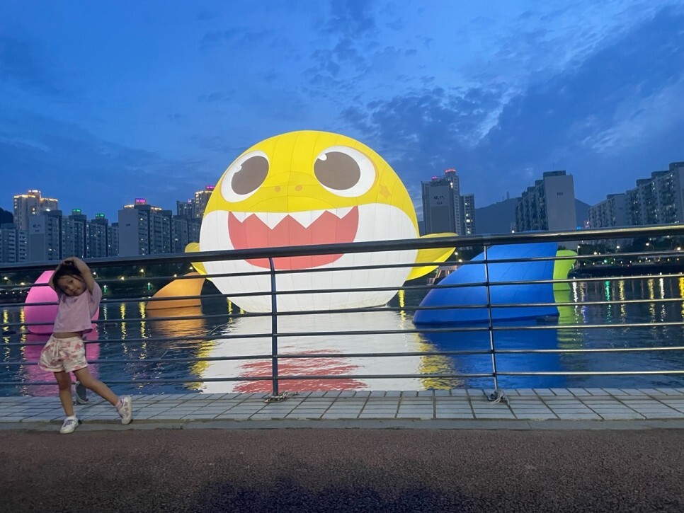 지난 주말에 apec나루공원에서 아기 상어 행사를 하였죠? 전 근무여서 못 보았어요. 못 보신 분들을 위해 초대형 아기 상어 풍선이 한 달 동안 수영강에 있다는 사실! 알고 계셨나요??? 비록 행사는 하루로 끝이 났지만 우리 아이들을 위해 한번 방문해도 좋을 것 같아요. 전 하율이와 씽씽 가를 끌고 와 가볍게 보았는데 그것만으로도 하율이가 되게 좋아했어요! 그럼 다 같이 보러 가 볼까요?