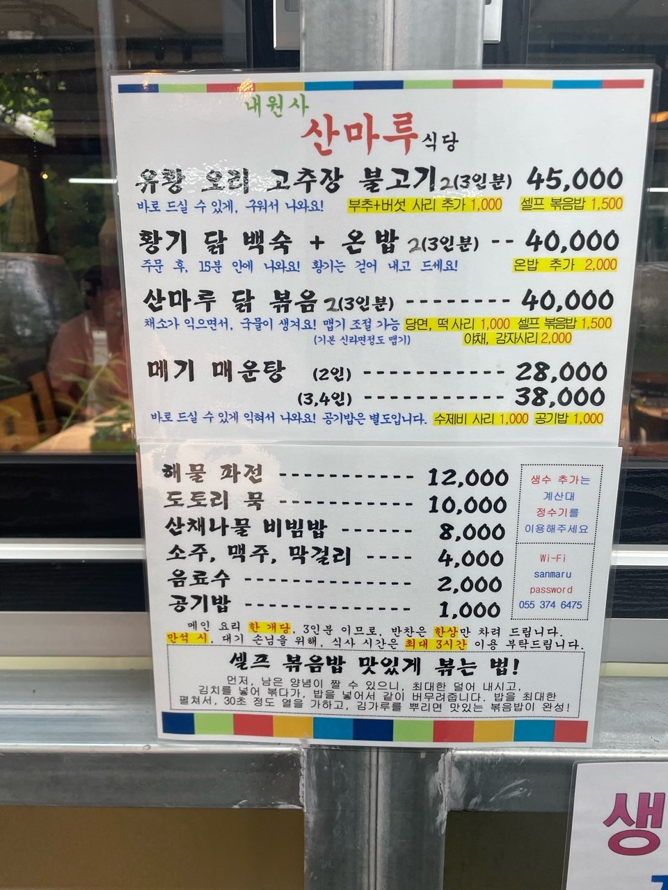저는 늘 평일 점심에서 가서 먹었는데 주말엔 웨이팅도 있다 하니 참고하세요. 내원사 계곡 바로 옆에 위치하고 있어 식당 내부에서 계곡의 절경을 감상하며 맛있는 음식을 드실 수가 있답니다.
