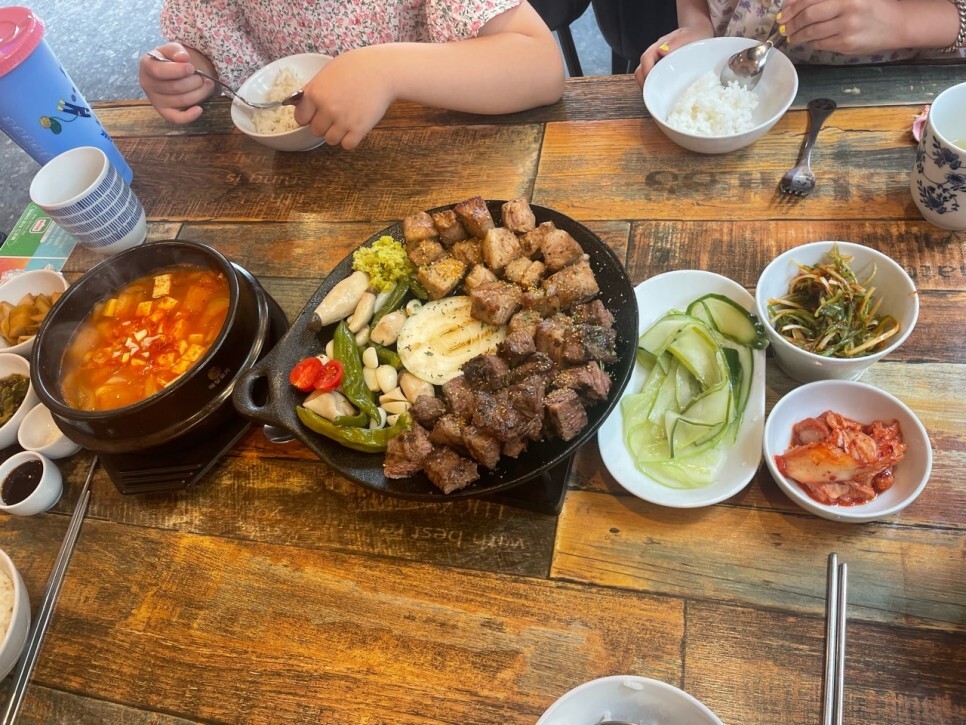냄새가 싫고 고기가 굽기 싫다면 이 집 어떨까요? 아이가 어리지만 고기가 꼭 먹고 싶은 가족들은 최고일 것 같네요. 덕분에 여름철에 쾌적하게 식사할 수 있었어요. 주말 점심에 방문해서 그런지 금세 홀이 차고 웨이팅 하는 모습이 보였어요. 저는 이제 알았지만 웨이팅 하는 유명 맛집인가 보네요. 양산 방문하게 된다면 방문해 보세요.